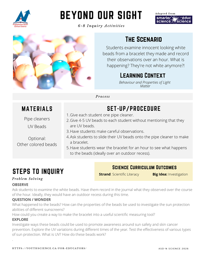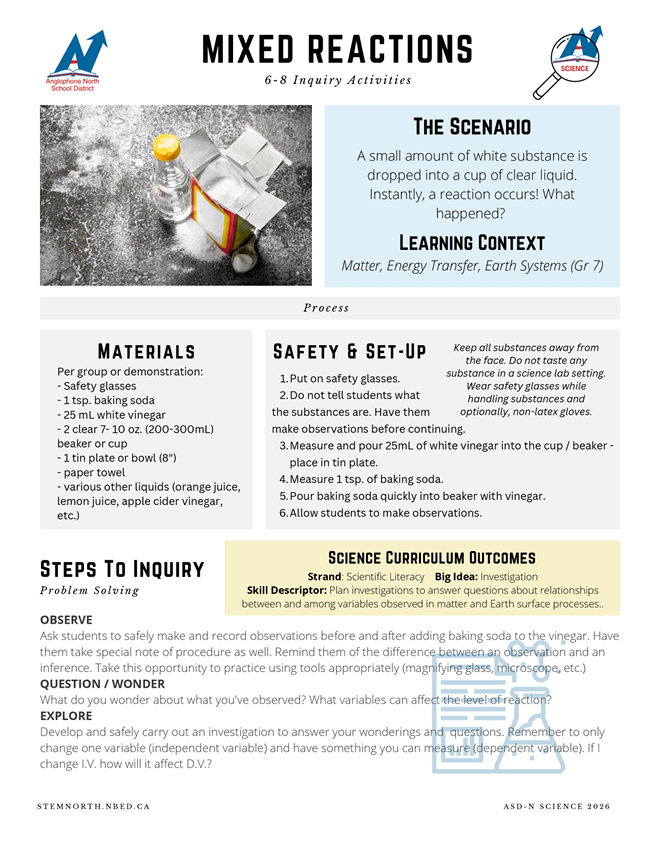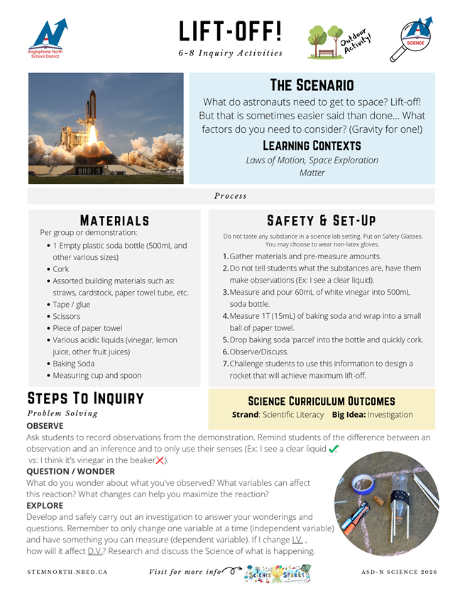 These activities are designed to create a curious ‘spark’ that can lead to further investigation and inquiry while building important process skills such as observing and questioning. Every Middle School received a kit in February 2026.